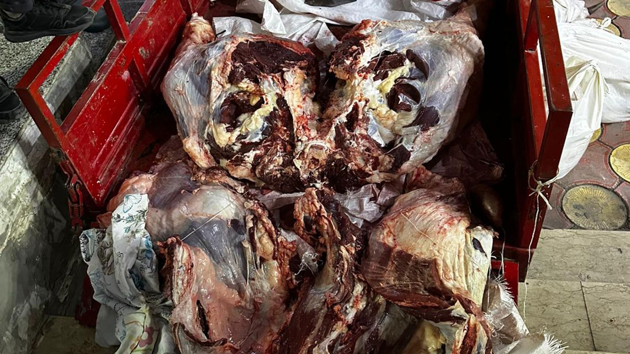 Zabıta ekipleri, kaçak etleri imha edilmek üzere topladı.
