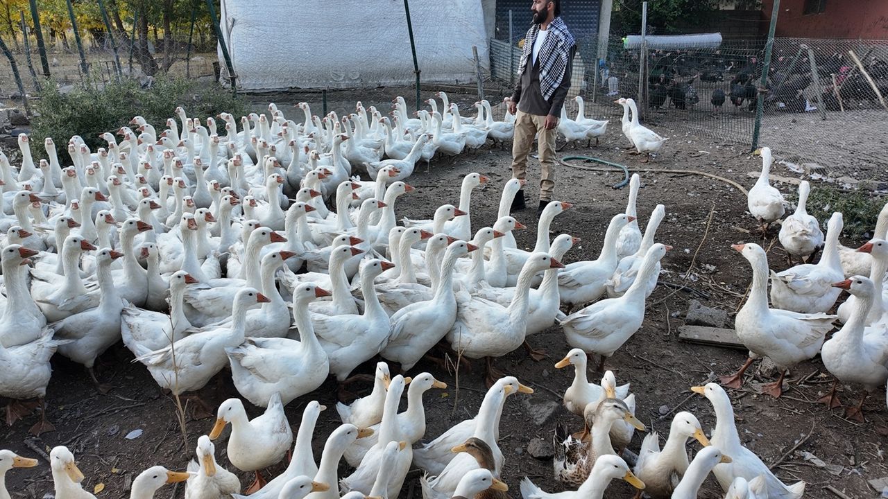 DİYARBAKIR HABER - Yaklaşık 6 yıldır kanatlı hayvanlardan kaz, ördek, tavuk, hindilerin üretimi ve satışını yapan Hüseyin Kösedağ, ıslık çaldığında yüzlerce kaz ve ördeğin aynı anda kendisine doğru koşarak gelmesi tebessüm ettiriyor.