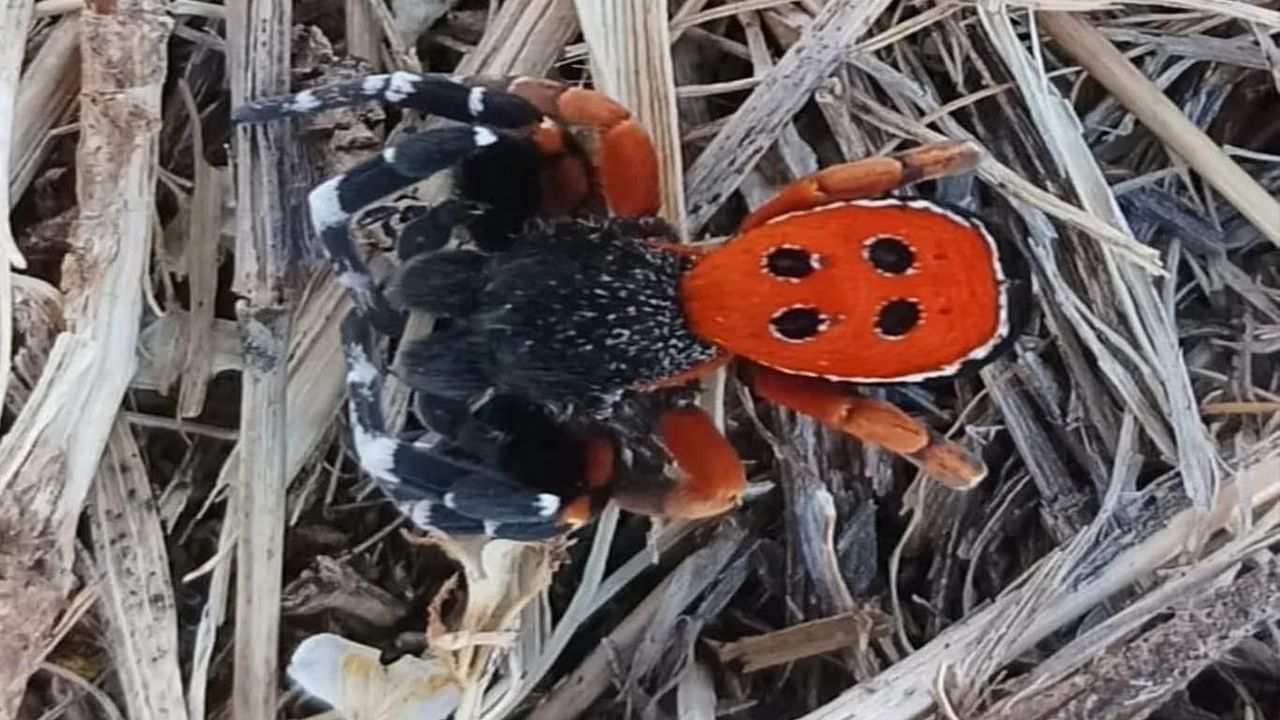 Karlıova ilçesinde bir vatandaş, nadir görülen uğur böceği örümceğini fark ederek cep telefonu ile görüntüledi. Görüntülere yansıyan örümceğin, kırmızı ve siyah benekli yapısı dikkat çekti.