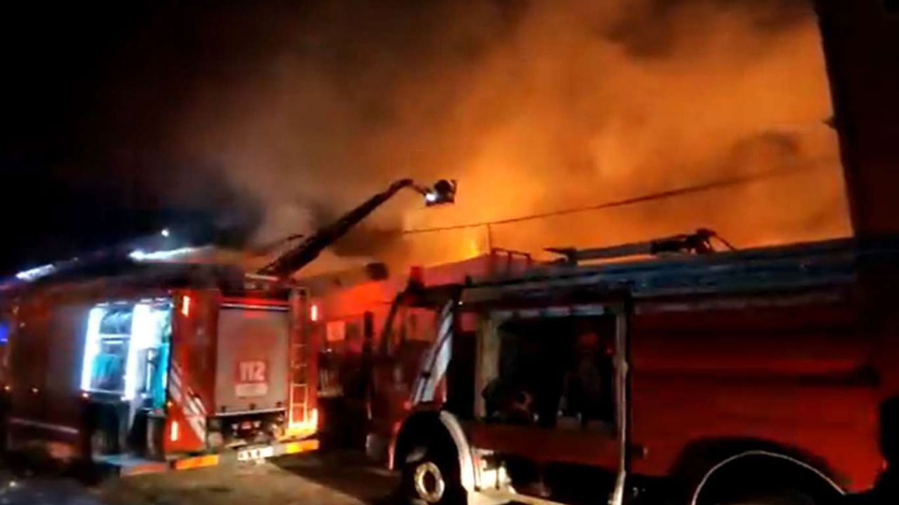 Yangın, İlçeye bağlı Küplüpınar Mahallesi 8. Aksu Sokak'ta bulunan otomotiv yedek parçaları satılan bir iş yerinde çıktı.