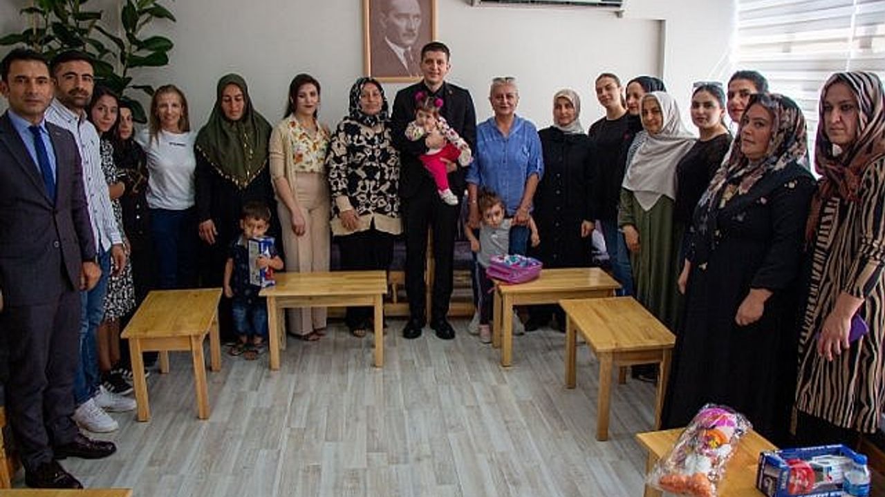 Ziyarete gelen kadınlar çiçek takdim ederken Kaymakam Erdoğan da kafilede bulunan çocuklara oyuncaklar hediye etti.