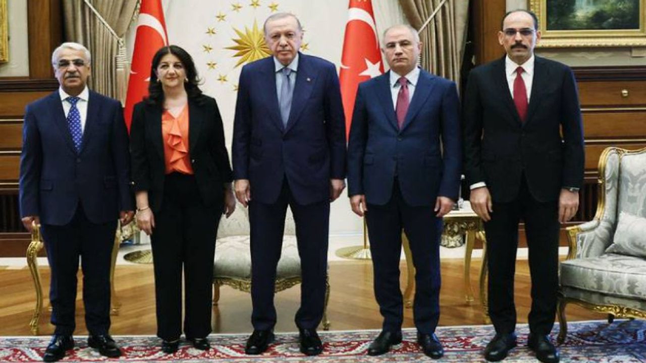 10 Nisan’da Van Milletvekili Pervin Buldan ve yaşamını yitiren TBMM Başkanvekili ve İstanbul Milletvekili Sırrı Süreyya Önder’den oluşan DEM Parti İmralı Heyeti, Erdoğan ile Beştepe’deki Cumhurbaşkanlığı’nda bir araya geldi.