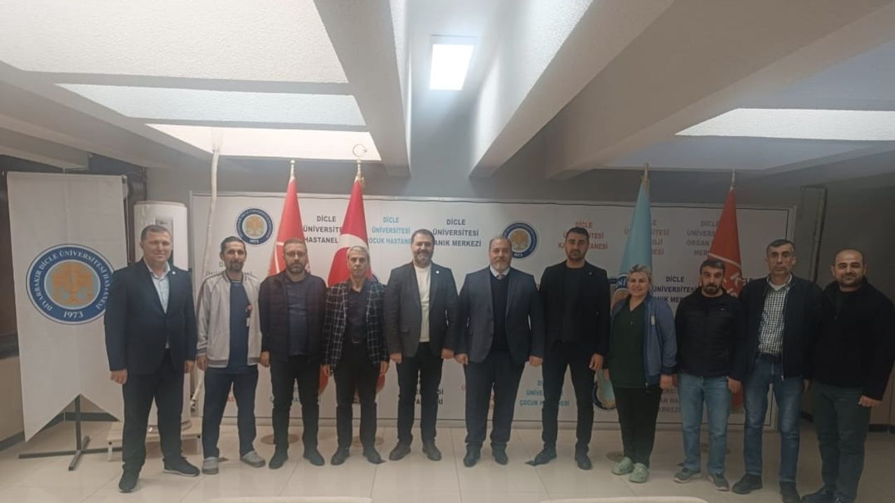 DİYARBAKIR HABER - DİSK Dev Sağlık-İş Sendikası Genel Başkan Yardımcısı Ümit Umdu, Diyarbakır Bölge Şube Başkanı Cebrail Akdemir, yönetim kurulu üyeleri ve temsilciler; Dicle Üniversitesi Hastanesi Başhekimi Gökhan Kırbaş’a hayırlı olsun ziyaretinde bulundu.
