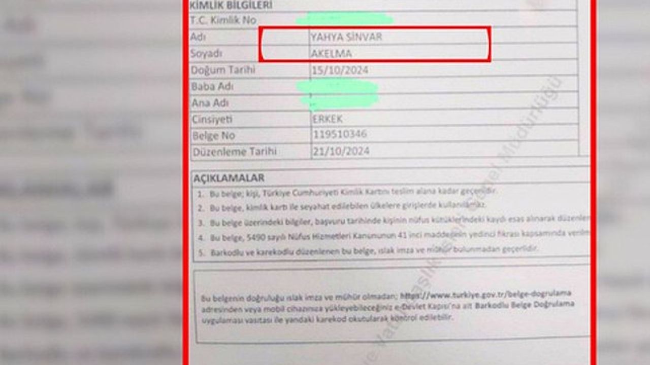 Amida Haber'in aktardığına göre, İsrail saldırılarında hayatını kaybeden Hamas lideri Yahya Sinvar anısına bebeğin adı bu şekilde konuldu. Bebek, Diyarbakır Nüfus Müdürlüğü'nde 21 Ekim'de Yahya Sinvar Akelma olarak resmî kayıtlara alındı.
