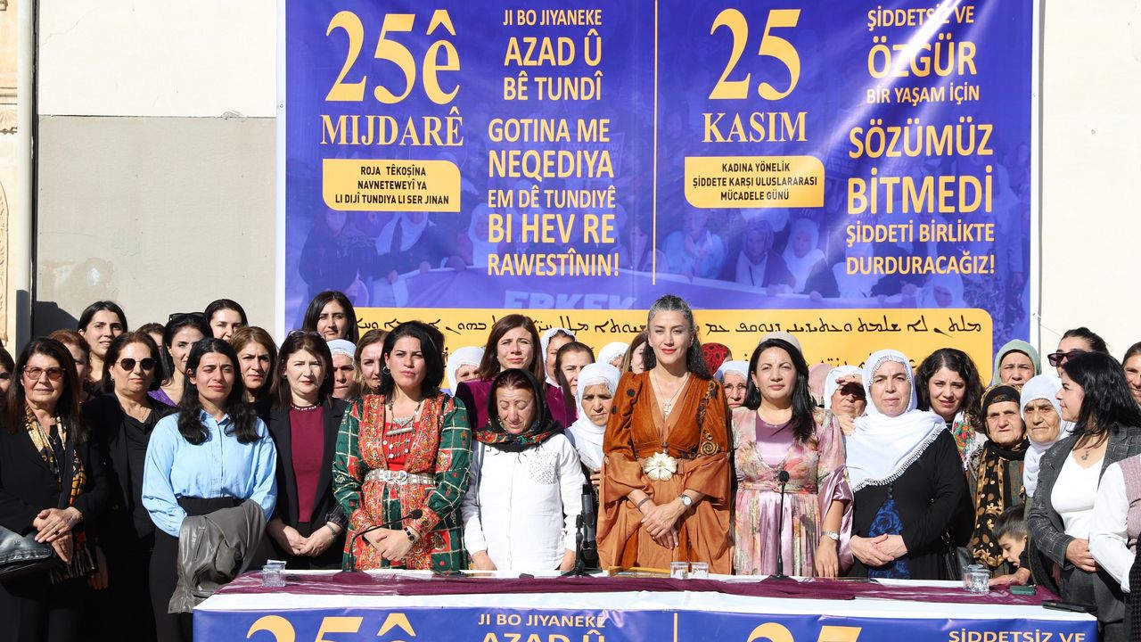 Halkların Eşitlik ve Demokrasi Partisi (DEM Parti) belediyeleri, 25 Kasım Kadına Yönelik Şiddete Karşı Uluslararası Mücadele Günü dolayısıyla geçen yıl başlatılan “Şiddetsiz ve Özgür Bir Yaşam İçin Sözümüz Bitmedi, Şiddeti Birlikte Durduracağız” kampanyasına ilişkin deklarasyon açıkladı. Mardin’in Nusaybin ilçesindeki Navjîn Kadın Yaşam ve Dayanışma Merkezi’nde yapılan açıklamaya, Diyarbakır Büyükşehir Belediyesi Eşbaşkanı Serra Bucak ile belediyelerin kadın eşbaşkanları ve birçok kadın katıldı.