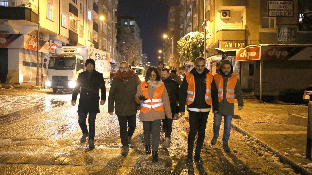 Kayapınar Belediyesi Eş Başkanları Berivan Gülşen Sincar ve Cengiz Dündar, iki gündür sahada yürütülen çalışmaları yerinde takip etti. Eş başkanlar, ekiplerden bilgi alarak karla mücadele çalışmalarının planlamasını yaptı ve sürecin aksamadan sürdürülmesi için talimatlar verdi.
