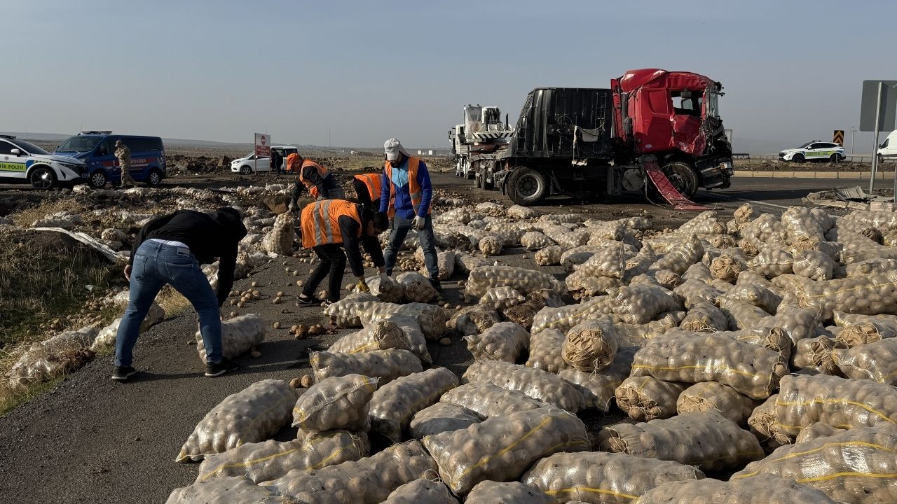 Devrilen tır ve patateslerin yola savrulması nedeniyle yolun bir şeridi ulaşıma kapandı.