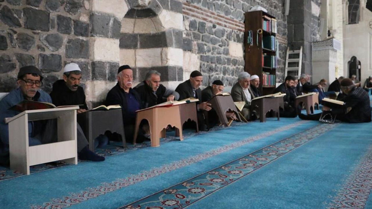 DİYARBAKIR HABER - Ramazan ayının gelmesiyle birlikte tarihi Ulu Cami'de mukabele geleneği de başladı. Müslümanların 5. Harem-i Şerif'i olarak bilinen Sur ilçesindeki Ulu Camide vatandaşlar mukabele geleneğine yoğun ilgi gösteriyor. Sabah, öğle ve ikindi namazlarından sonra başlayan mukabeleye katılan vatandaşlar, hafızların Kur’an-ı Kerim tilavetini dinleyip takip ediyor.