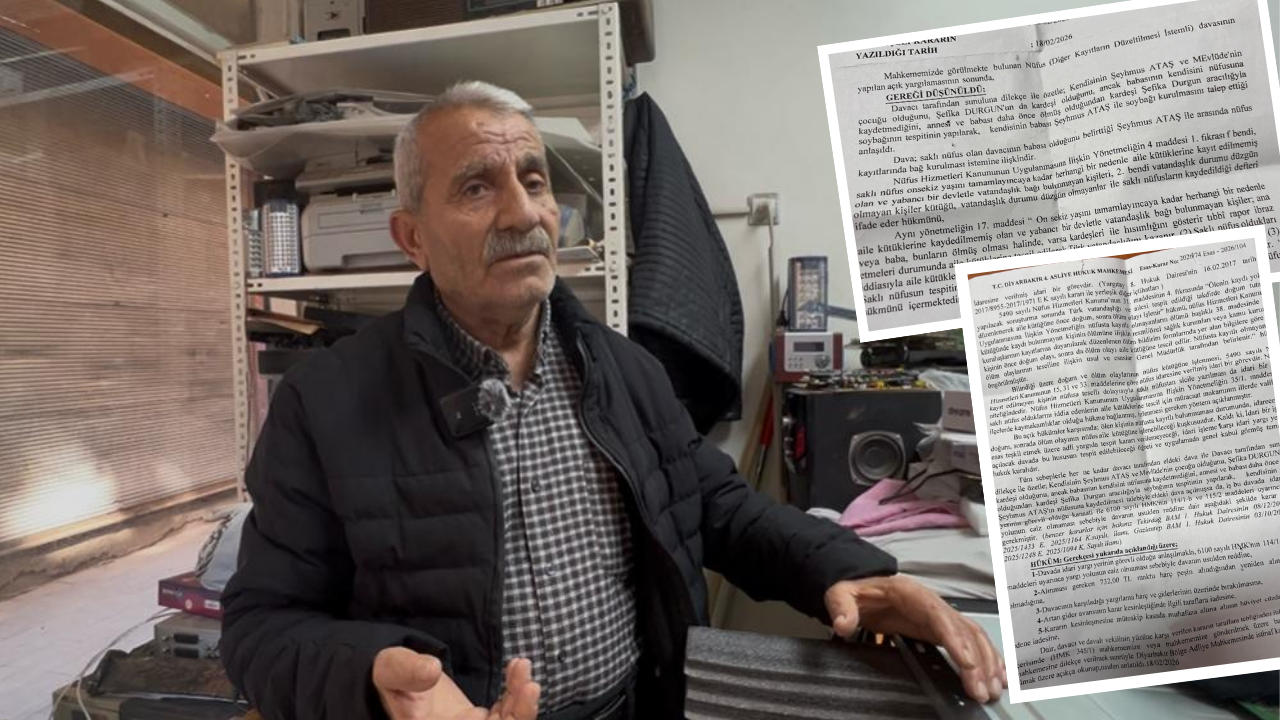 Şahıs, soybağı kurulması ve nüfusa tescil talebiyle dava açtı. Dosyaya bakan Diyarbakır 4. Asliye Hukuk Mahkemesi, nüfus kayıt işlemlerinin idari nitelikte olduğuna hükmetti.
