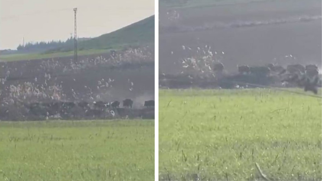 DİYARBAKIR HABER - Diyarbakır'ın Çınar ilçesinde aç kalan domuz sürüsü tarlada yiyeyek ararken görüntülendi.