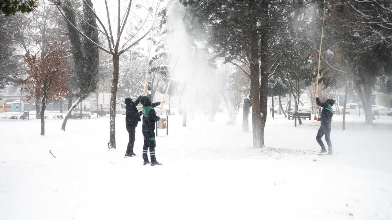Belediye Park ve Bahçeler Müdürlüğü ekipleri, kar yağışı sonrası ağaç dallarında biriken ve ağırlık oluşturarak kırılma riskine neden olan karları temizlemek için sahaya indi. İlçe merkezi ve kırsal bölgelerdeki parklar, refüjler ve yeşil alanlarda binlerce ağaç titizlikle kardan arındırıldı.