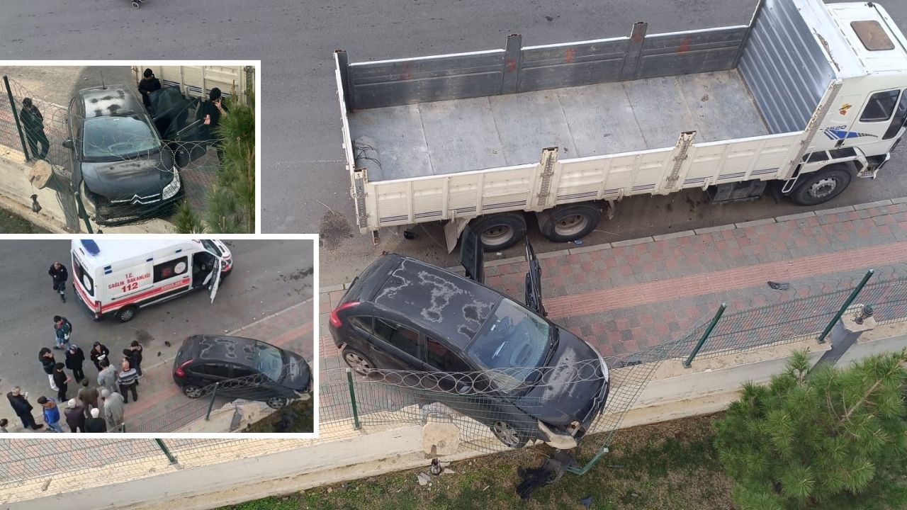 Ailesinden habersiz aracı alan ve ismi öğrenilemeyen çocuk sürücü bir anda aracın kontrolünü kaybetti. Önünde duran park halindeki kamyona çarpmamak için manevra yapan çocuk, bir sitenin çitlerine çarparak durabildi.