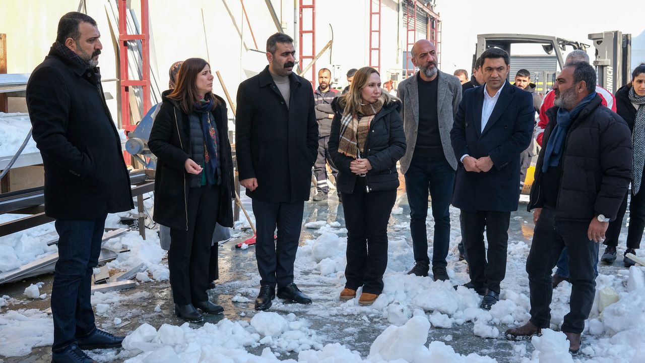 Diyarbakır Büyükşehir Belediyesi Eşbaşkanları Serra Bucak ve Doğan Hatun, Organize Sanayi Bölgesi’nde (OSB) etkili olan kar yağışı nedeniyle zarar gören işyerlerine dayanışma ziyareti gerçekleştirdi.