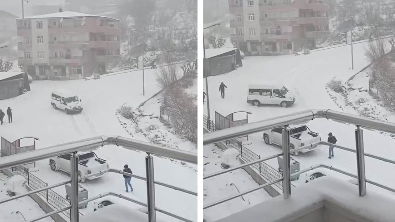 Olay, Kulp ilçe merkezinde meydana geldi. Yoğun kar yağışının beraberinde getirdiği buzlanma sürücülere korku dolu anlar yaşattı. Yokuş aşağı inen bir transit, kayganlaşan yolda sürücüsünün kontrolünden çıkarak ilerlemeye başladı. Bu sırada yolun sonunda bekleyen pikap, sürücüsünün son andaki manevrası ile kontrolsüz bir şekilde ilerleyen transit ile çarpışmaktan kurtuldu.