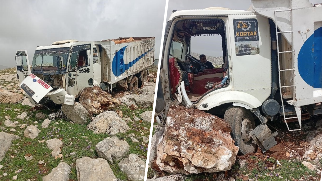 DİYARBAKIR HABER - Diyarbakır'ın Silvan ilçesinde freni boşalan hafriyat kamyonunun taşlara çarpması sonucu sürücü yaralandı.