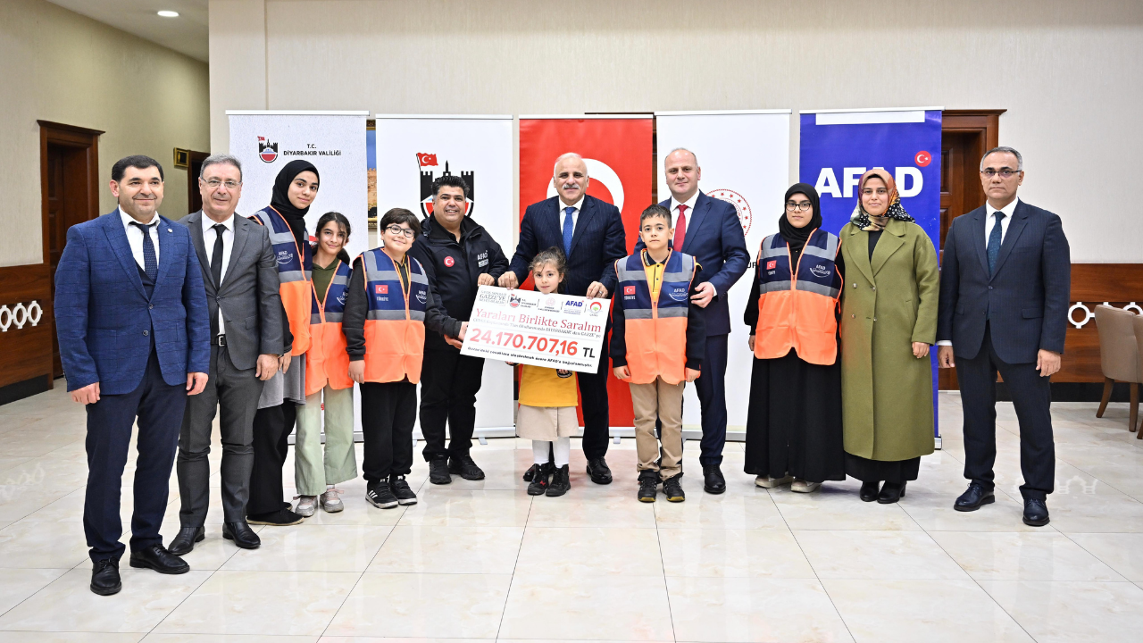 DİYARBAKIR HABER - Diyarbakır’da 2025–2026 eğitim öğretim yılında yürütülen “Yaraları Birlikte Saralım – Diyarbakır’dan Gazze’ye Yardım Kampanyası” kapsamında toplanan 24.170.707,16 TL, bugün Hevsel Toplantı Salonu’nda düzenlenen programla AFAD’a teslim edildi. Kampanya, il genelindeki tüm okulların katılımıyla gerçekleştirildi ve Gazze’deki çocuklara destek amacı taşıdı.
