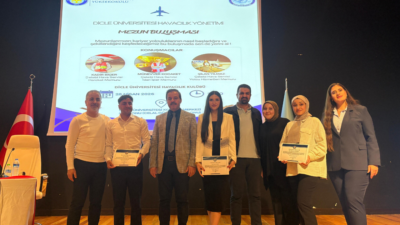 DİYARBAKIR HABER - Dicle Üniversitesi bünyesinde faaliyet gösteren Dicle Üniversitesi Havacılık Kulübü tarafından düzenlenen “Havacılık Yönetimi Mezun Buluşması”, öğrencilerin yoğun ilgisiyle gerçekleştirildi. Havacılık sektörüne ilgi duyan öğrencileri mezunlarla bir araya getiren etkinlikte, kariyer yolculukları, sektörel deneyimler ve mesleki gelişim süreçleri kapsamlı şekilde ele alındı.