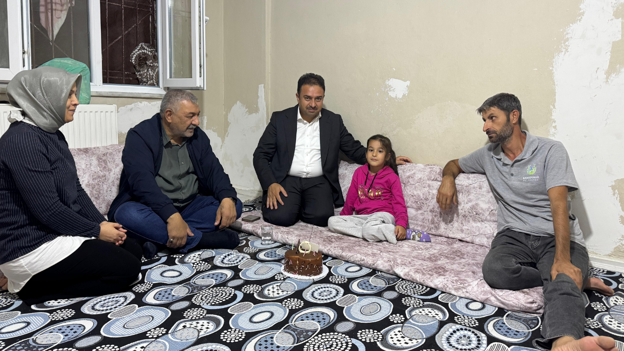Ak Parti Kayapınar İlçe Kadın Kolları Başkanı Yonca Durmaz ve teşkilat yöneticileriyle beraber aileyi ziyaret eden Aytekin, yeni okula başlayan ailenin minik kızı Hayrünnisa Nur'a doğum günü sürprizi yaptı.