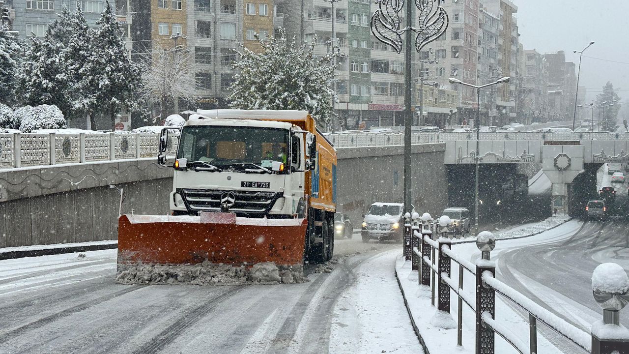 Diyarbakır’da sabah saatlerinde başlayan kar yağışı, etkisini sürdürüyor. Yol Yapım Bakım ve Onarım Dairesi Başkanlığı ekipleri, kent genelinde kar ve buzlanmaya karşı sahaya çıktı.