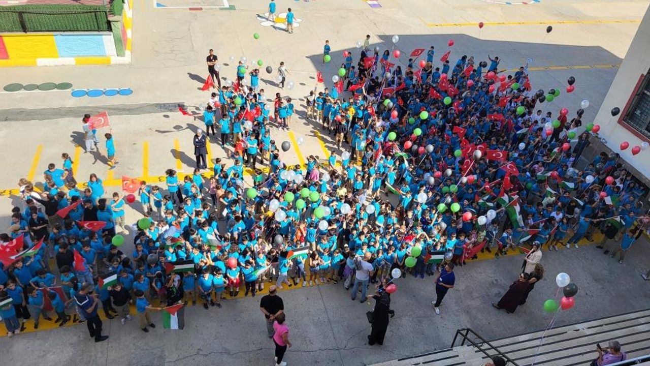 "Filistin ve Gazze" temalı farkındalık etkinliği Mezopotamya İlkokulunda öğrenci, veli ve öğretmenlerin yoğun katılımıyla gerçekleştirildi. Okul bahçesinde, koridor ve salonlarında Filistin halkına destek mesajları verildi. Öğrencilerin çizdiği resimler ve yazdığı mektuplar okul salonunda sergilenirken, kısa film gösterimleriyle Gazze'de yaşanan dram öğrencilere anlatıldı. Öğrenciler çizdikleri resim ve yazdıkları mektuplarda Filistin'de yaşanan zulme dikkat çekilerek destek mesajı verildi. Okul bahçesinde "Filistin'e Özgürlük ve Özgür Filistin" sloganları atan öğrenciler hazırladıkları afiş, pankart ve dövizler eşliğinde Filistin bayrağıyla özdeşleşen kırmızı, yeşil, beyaz ve siyah renkli balonlar uçurdu.
