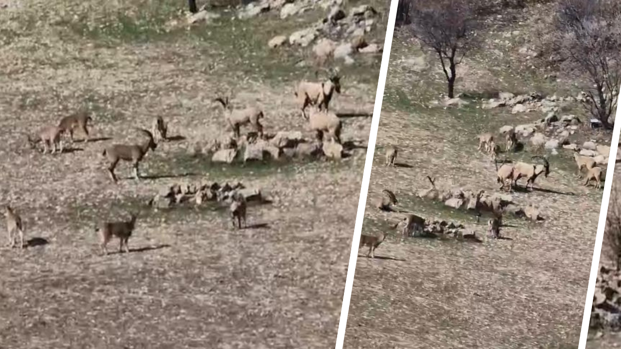 DİYARBAKIR HABER - Diyarbakır'ın Çermik ilçesinde nesli tükenme tehlikesi nedeniyle koruma altında olan ve kaçak avlanması durumunda 940 bin lira ceza kesilen dağ keçileri sürü halinde görüntülendi.