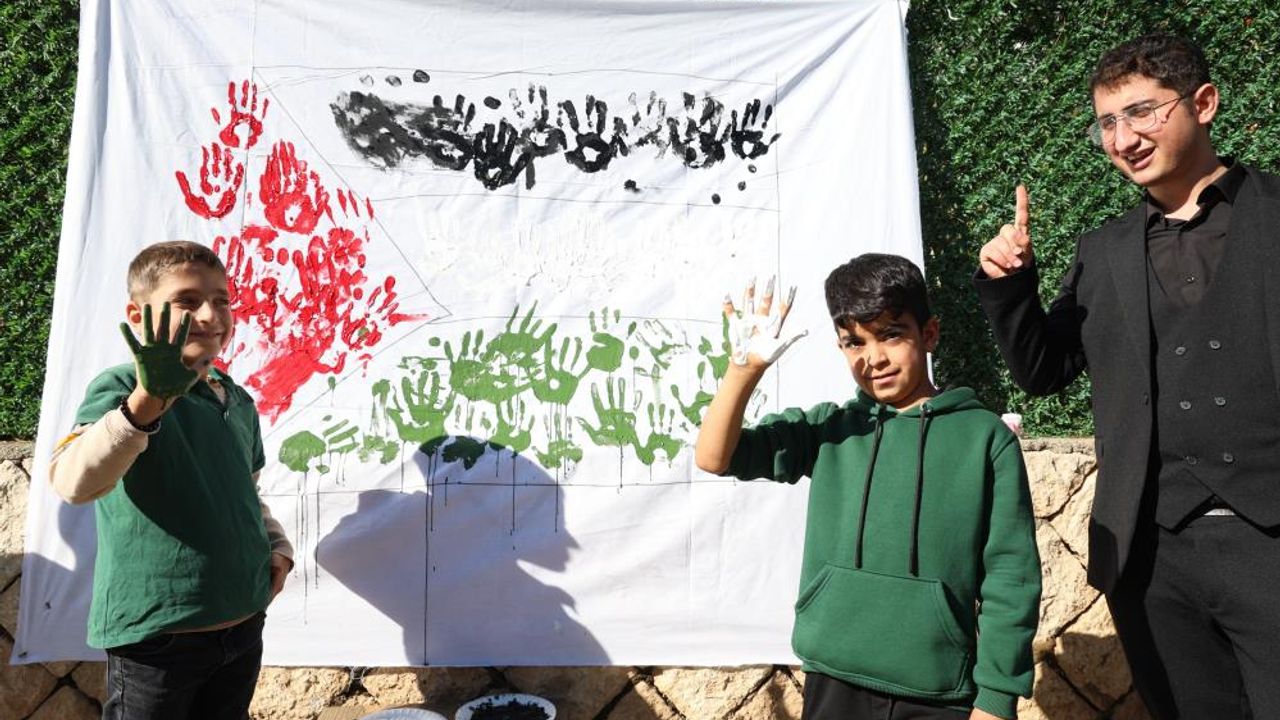 Eğil Belediyesi tarafından İsrail'in saldırılarına tepki göstermek ve yaşanan zulme dikkati çekmek amacıyla "Filistin için sen de iz bırak" etkinliği yapıldı. Etkinliğe katılan öğrenciler, kırmızı, siyah ve yeşile boyadıkları parmaklarını ve ellerini kumaştan oluşturulan panoya basarak Filistin bayrağını simgeleyen çalışma ortaya çıkardı.
