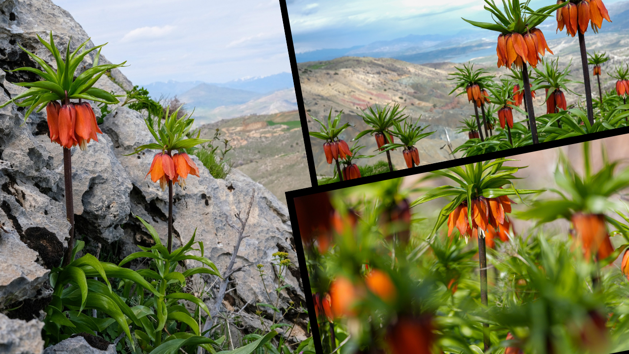 Ters laleler, uzun gövdeleri ve aşağı doğru sarkan çiçekleriyle kayalık zemin üzerinde belirgin bir görsel kontrast oluşturuyor. Yer yer yoğun kümeler halinde görülen laleler, dağın doğal dokusuyla birleşerek fotoğraf tutkunlarına da eşsiz manzaralar sunuyor.