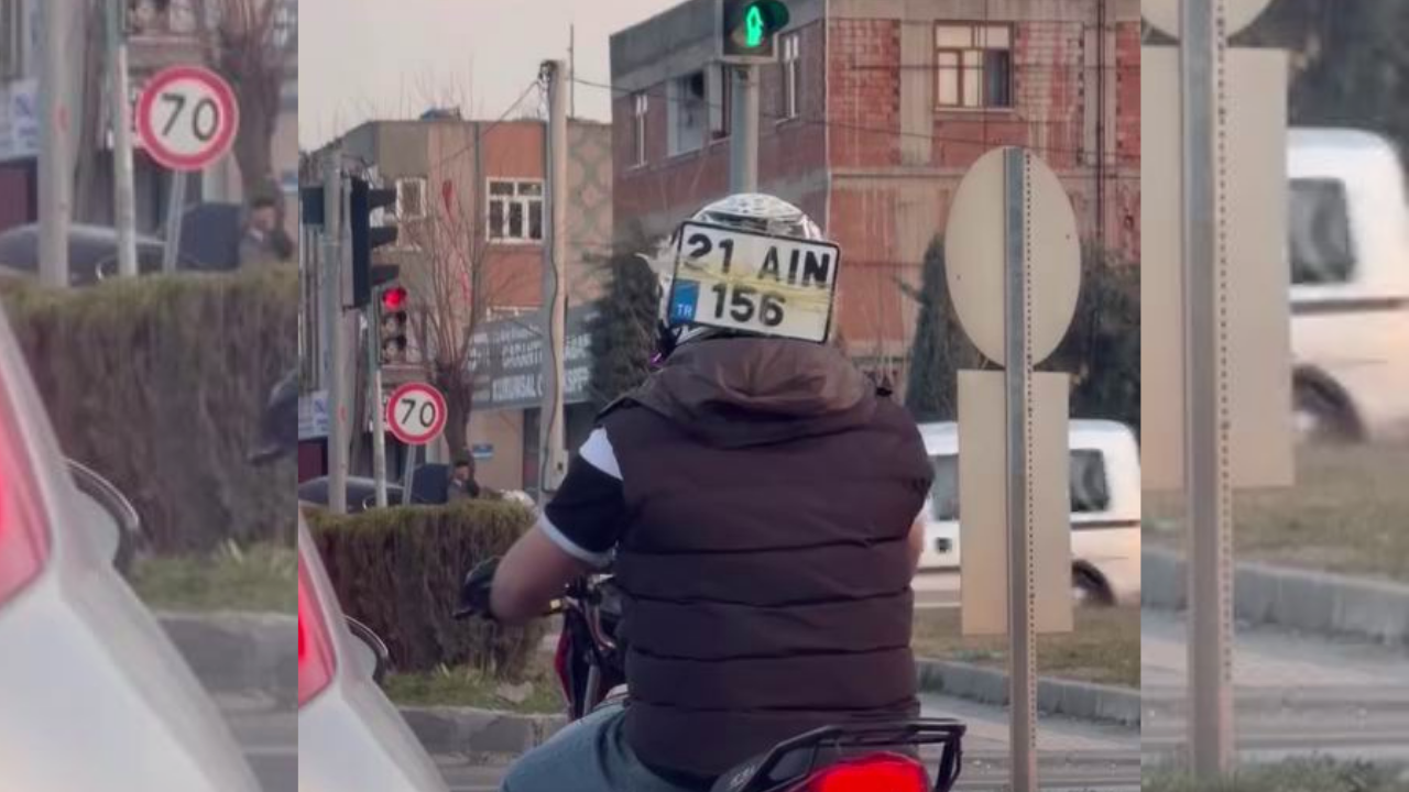 Olay, Diyarbakır-Elazığ karayolunda yaşandı. Bir motosiklet sürücüsü, yola çıktıktan sonra plakasının düştüğünü gördü. Plakasını bir türlü yerine takamayan sürücü, ceza yememek için ilginç bir yönteme başvurdu. İsmi öğrenilemeyen sürücü, düşen plakasını kaskına bantlayarak trafikte seyretmeye devam etti. İlginç anlar cep telefonu kamerasına yansıdı.