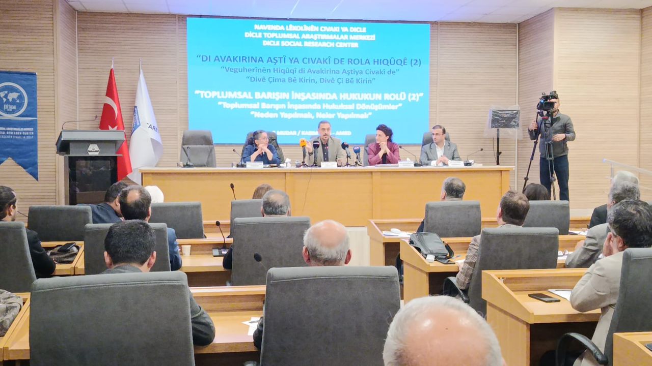DİYARBAKIR HABER- Dicle Toplumsal Araştırmalar Merkezi (DİTAM), “Toplumsal Barışın İnşasında Hukukun Rolü” toplantılarının ikincisini “Toplumsal Barışın İnşasında Hukuksal Dönüşümler – Neden Yapılmalı, Neler Yapılmalı” başlığıyla Diyarbakır Ticaret ve Sanayi Odası Konferans Salonu’nda gerçekleştirdi.