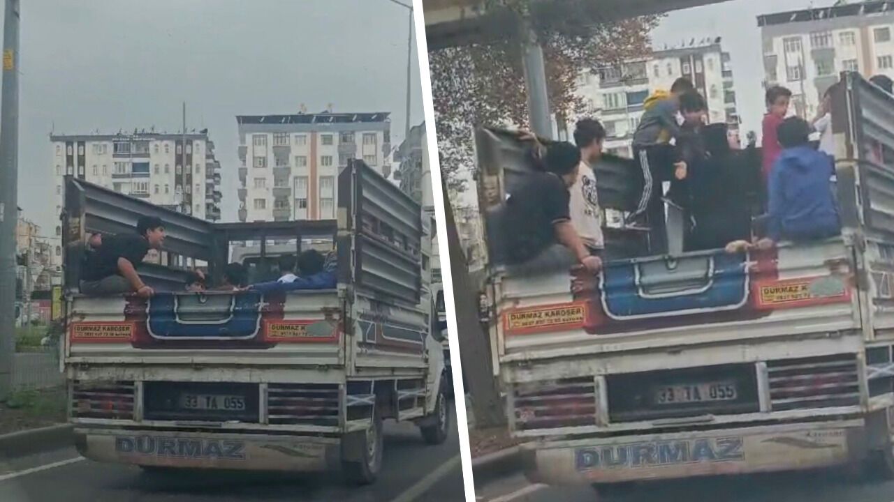 Görüntülerde, çocukların kamyonetin arkasında oturarak ilerlediği ve zaman zaman dengesiz hareketler yaptığı görülürken, trafikteki diğer araç sürücülerinin de zor anlar yaşadığı dikkat çekti.
