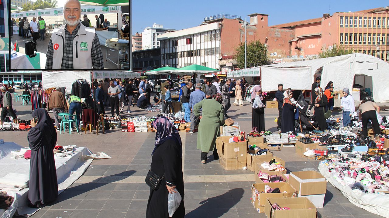 "Bir haftadan beridir yoğun bir tempoyla çalıştık. Sağ olsunlar hayırseverlerimiz, bağışçılarımız, gönül dostlarımız, kadın temsilcilerimiz adeta bir seferberlik ilan ettiler. Tabi ki bunun öncesi de var. Aylar öncesinden bunun alt yapısı oluşturuldu. Sahada hayırseverlerimize gittik, böyle bir çalışma yürüteceğimizi söyledik ve katkı sunmalarını talep ettik. Onlarda bizi yalnız bırakmadı. Bugün 8'inci gündeyiz ve görüldüğü üzere alan dolu ve ayakkabıdan giyime, yiyecekten elektronik eşyaya kadar her çeşit malzeme mevcut."