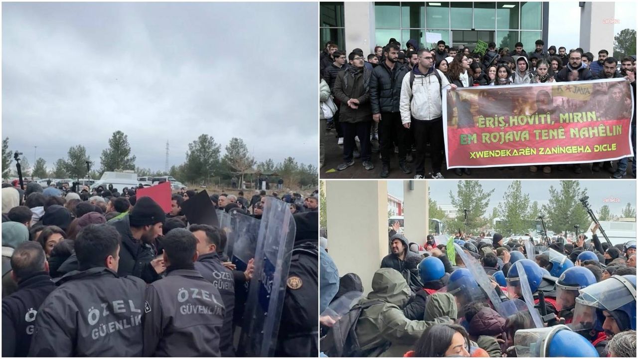 “Dicle Üniversitesi öğrencileri olarak maruz kaldığımız şiddete sesini bile çıkarmayan rektör başta olmak üzere üniversite yönetimi bu tavrıyla şiddetin bir parçası oluyor. Kaba kuvvet ve tehditle öğrenciyi yıldırıp bu tavrı sindirmeye çalışan ve öğrenci karşısında duran herkes bilmeli ki kendi kanunlarında ifade toplantı ve gösteri yürüyüş hakkı yasal hak olmasına rağmen polis ölçülülük ilkesini aşarak müdahalede bulunuyor. Üniversitelerin özerk olması ve akademik bir sivil alan olmasına rağmen öğrenciye yapılan bu muamele kanuna aykırıdır. Öğrenciye uygulanan bu tavır devletin kendi kanunlarıyla çelişmektedir. Bu zihniyet ve zihniyeti kınıyoruz. Rojhilat'tan Rojava'ya yaşasın Kürt halkının direnişi.”