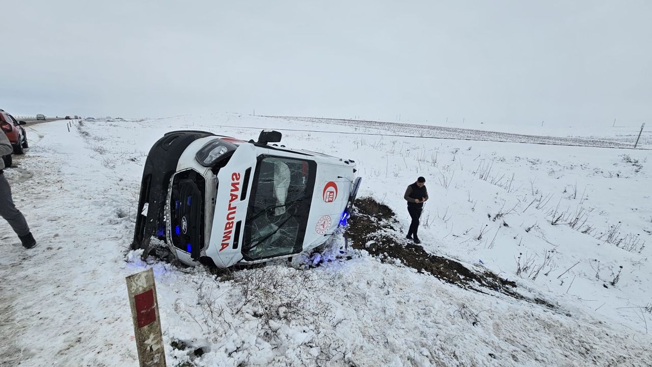 DİYARBAKIR HABER - Diyarbakır’da etkili olan yoğun kar yağışı nedeniyle Bismil ilçesinde vakaya giden 112 Acil Çağrı Merkezi’ne ait ambulans, sürücüsünün direksiyon hâkimiyetini kaybetmesi sonucu devrilerek şarampole yuvarlandı.