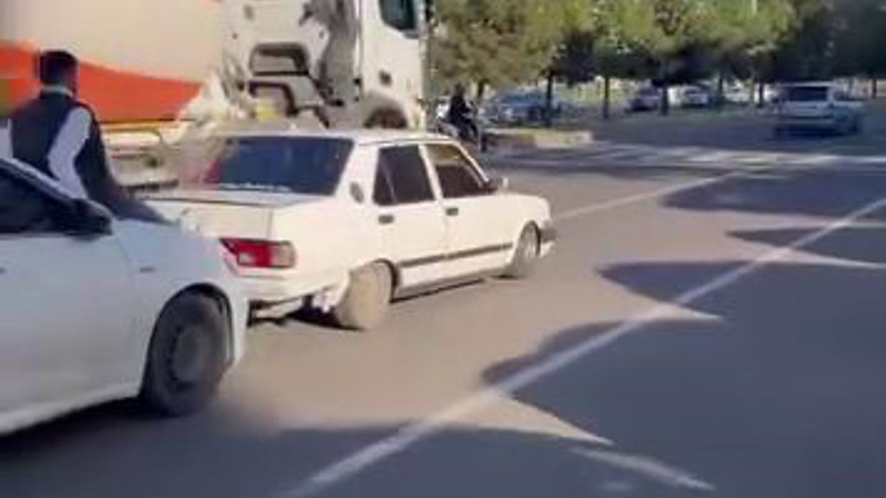 DİYARBAKIR HABER - Diyarbakır’da bir kişi, yolda kalan Fiat Tofaş marka aracı, başka bir aracın kaputunun üzerine oturup ayakları ile ittirdi. Trafiğin tehlikeye atıldığı o anlar cep telefonu kamerasına yansıdı.