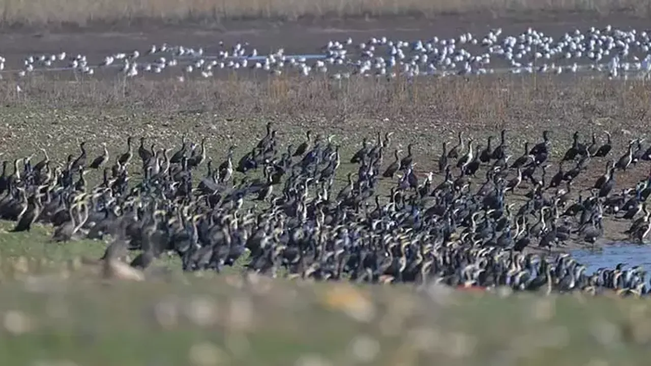DİYARBAKIR HABER - Diyarbakır’da Dicle Üniversitesi Yerleşkesi'ndeki Kabaklı Göleti'nde farklı türden binlerce kuş, bir arada beslenirken görüntülendi. Biyoçeşitlilik ve Çevre Koruma Uzmanı Prof. Dr. Ahmet Kılıç, "Karabatakların bu kadar yoğun halde bir arada çekildiği video ilk" dedi.