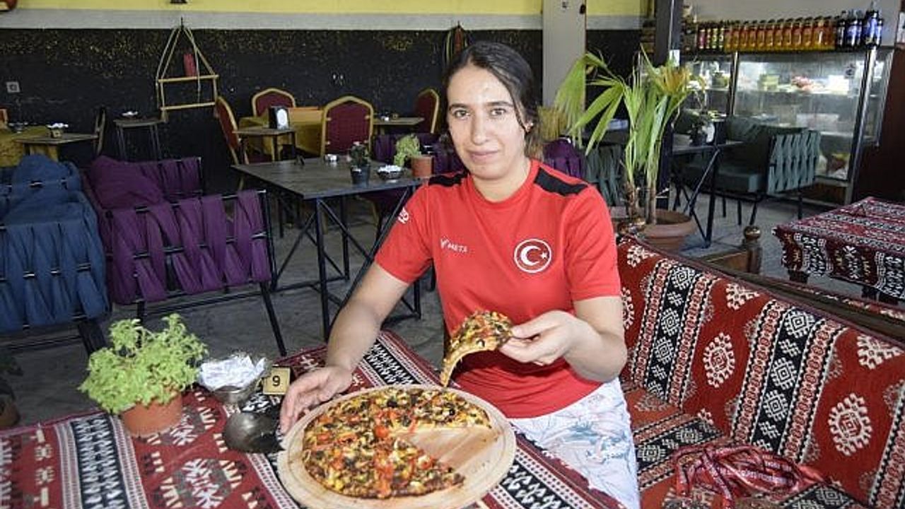 Diyarbakır'ın Dicle ilçesinde Bilek güreşinde Avrupa Şampiyonu ünvanlı milli sporcu Medine Gökhan, ilçenin eski adı Piran'dan esinlenerek "Pirano" ismini verdikleri yerli ürünlerle kavurmalı, yöresel lezzetlerle yöreye özgü pizza yapıyor.