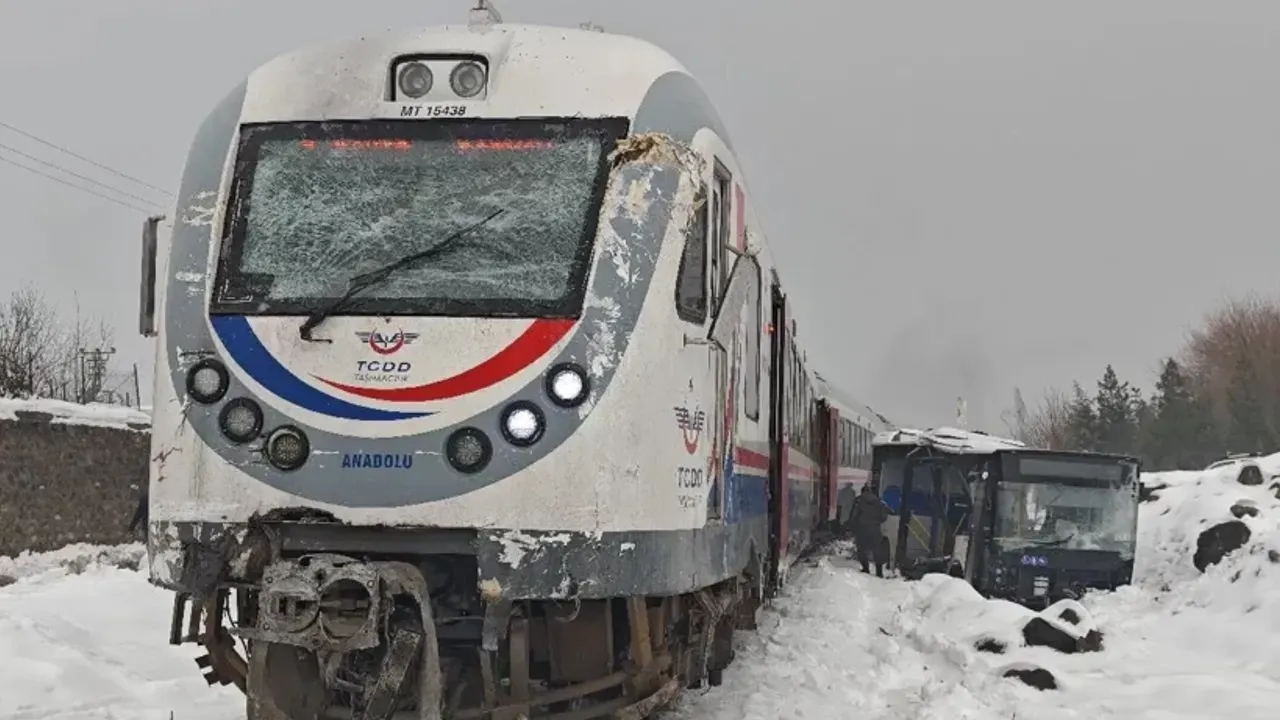 Diyarbakır-Kurtalan arası çalışan yolcu treni, hemzemin geçitte 21 AIC 280 plakalı belediye otobüsüne çarptı. Otobüs, bir süre sürüklendi.