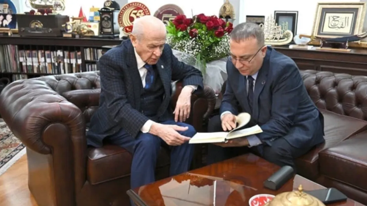Bahçeli ile birlikte kara kaplı bir defteri inceledikleri anlara ilişkin fotoğraflar paylaşan Yönter, "Allah başımızdan eksik etmesin inşallah…" notunu düştü.