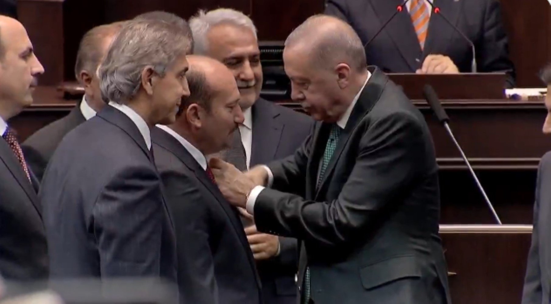 Cumhurbaşkanı Erdoğan Ak Parti grup toplantısında konuştu. Erdoğan konuşmasının sonunda CHP'den istifa ederek Ak Parti’ye geçen Aksu Belediye Başkanı İsa Yıldırım'a rozetini taktı.