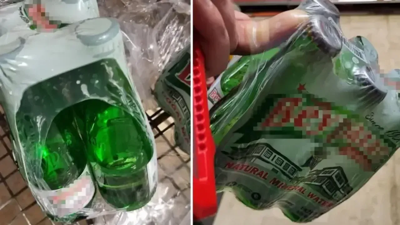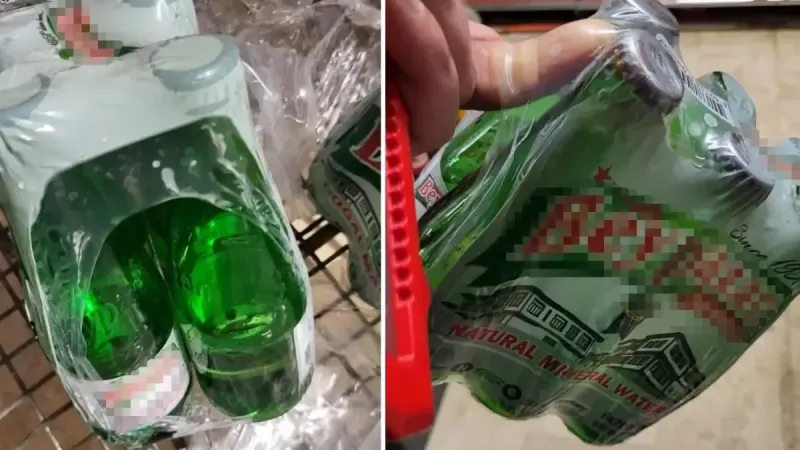 Marketten aldığı 6'lı sade maden suyu paketini inceleyen bir vatandaş bazı şişelerin kapağının olmadığını fark ederek durumu fotoğrafladı ve sosyal medyada paylaştı.