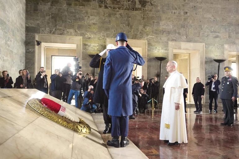 Papa 14. Leo’nun Türkiye’deki ziyaretinin ilk durağı, Ulu Önder Mustafa Kemal Atatürk’ün ebedi istirahatgâhı Anıtkabir oldu. Papa, Aslanlı Yol’dan geçerek Atatürk’ün mozolesine çelenk bıraktı ve saygı duruşunda bulundu. Çelenk merasiminin ardından Misak-ı Milli Kulesi’ne gelerek Anıtkabir Özel Defteri’ni imzaladı ve “Türkiye’yi ziyaret edebildiğim için Tanrı’ya şükrediyorum ve bu ülkeye ve insanlarına barış ve refah bolluğu diliyorum” sözlerini yazdı. Papa’ya Anıtkabir ziyaretinde Kültür ve Turizm Bakanı Mehmet Nuri Ersoy eşlik etti.
