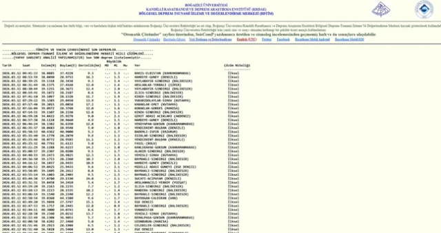 KANDİLLİ SON DEPREMLER LİSTESİ