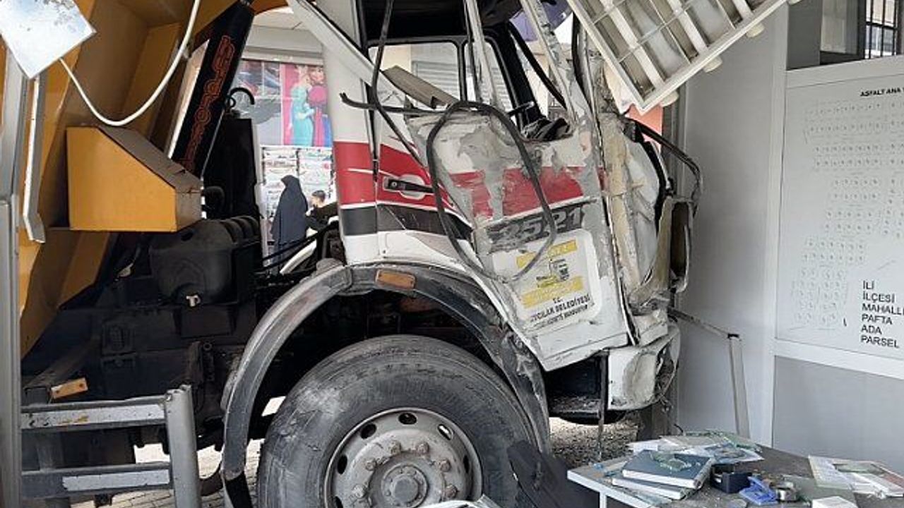 Avcılar'da freni boşalan belediyeye ait hafriyat kamyonunun girdiği emlakçı dükkanında hasar oluştu.