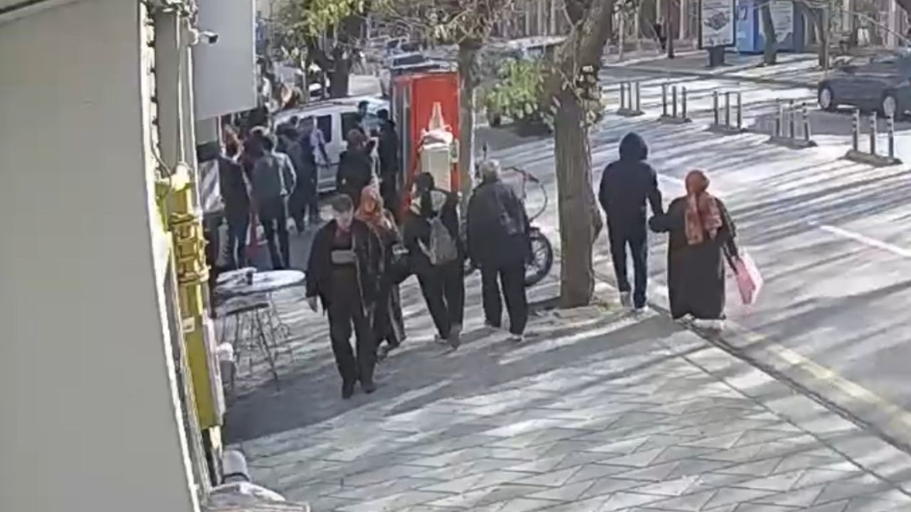 Öte yandan güvenlik kamerasına yansıyan görüntülerde, çevredeki vatandaşların kavgayı ayırmak yerine izlemeyi tercih ettiği görüldü.