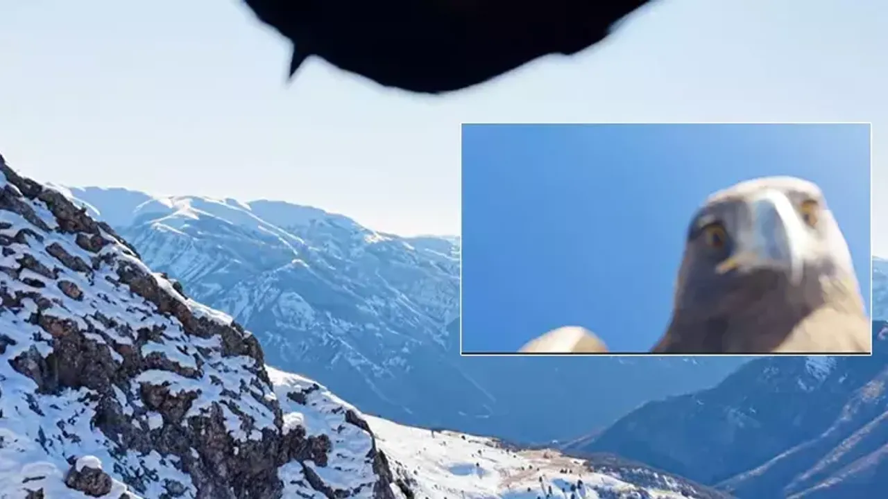 Kartal, dronu kaparak bir süre havada taşıdıktan sonra dağın zirvesine bıraktı.