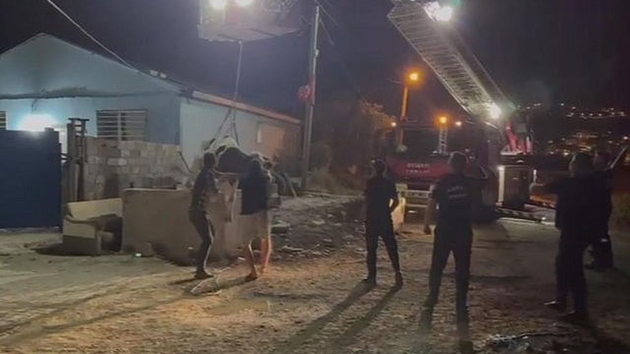 Hatay"ın Antakya ilçesinde kuyuya düşen inek, itfaiye ekipleri tarafından vinçle kurtarıldı.