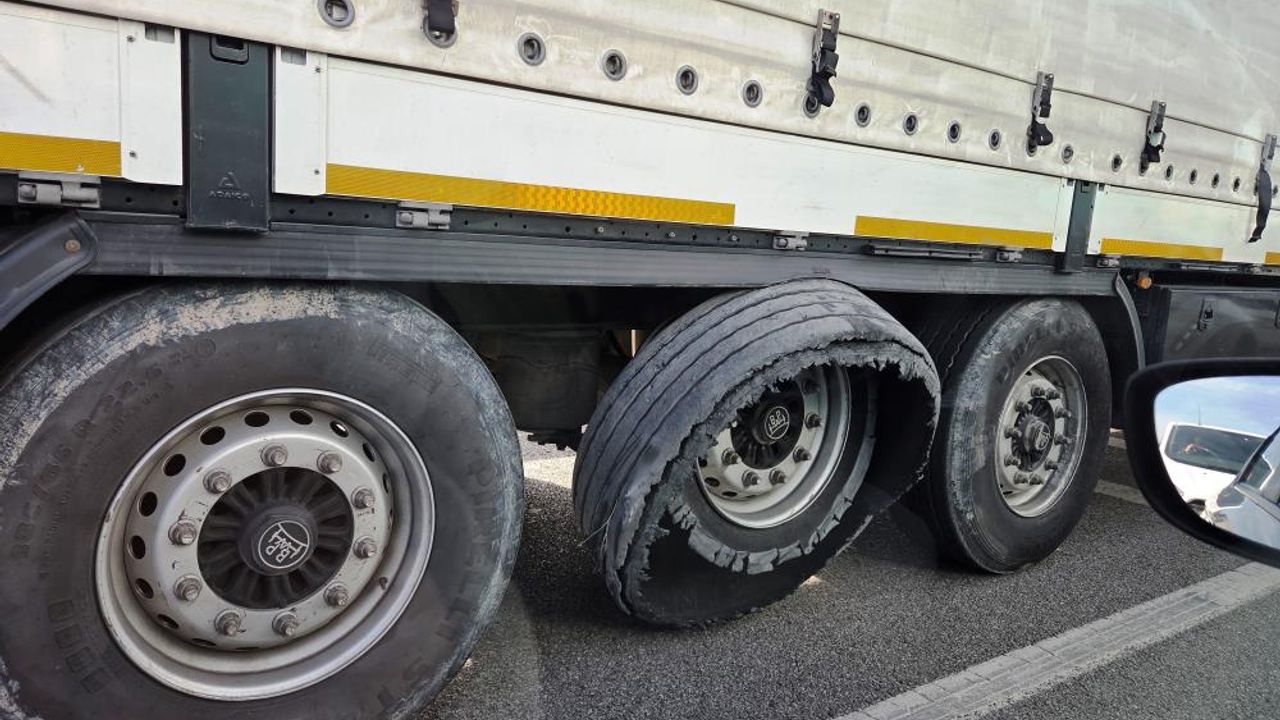 Olay, bugün saat 14.00 sıralarında Çarşamba ilçesinde meydana geldi. Samsun istikametine seyir halinde bulunan 38 plakalı bir lojistik firmasına ait tırın sağ arka grubunda bulunan tekerlerinden ortadakinin lastiğinin yarıldığı görüldü. Durumu fark eden diğer sürücüler kısa süreli endişe yaşarken, korna çalarak tır şoförünü uyardılar.