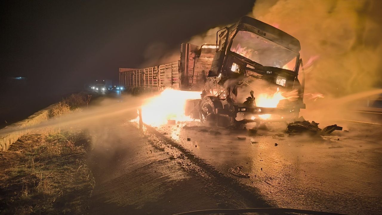 Edinilen bilgiye göre, M.E. yönetimindeki 63 AHY 580 plakalı tır, aynı seyirde ilerleyen başka bir tır ile çarpıştı. Çarpışmanın etkisiyle tırın kupa kısmı alev aldı. Alevlerin kısa sürede büyümesi üzerine sürücü E., yara almadan araçtan çıkmayı başardı.