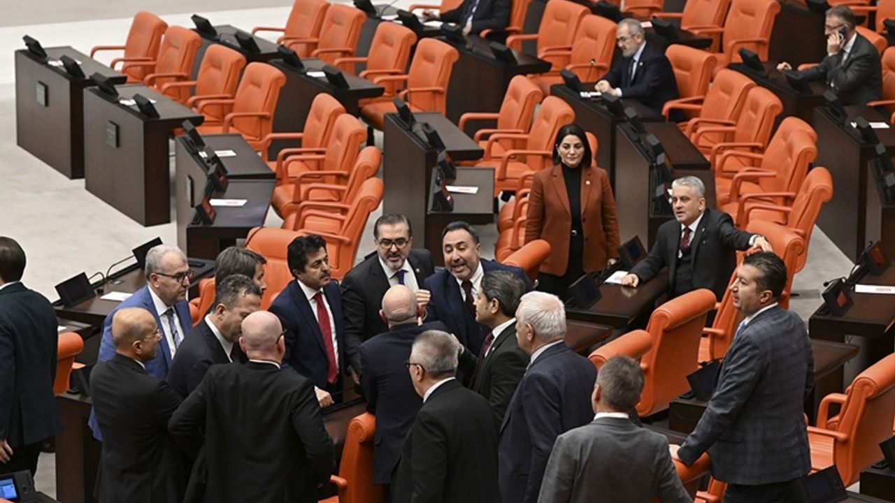 Kürsüdeki konuşmasını bitiren Sakık'ın DEM Parti sıralarına gittiği sırada tartışma büyüdü. İYİ Parti ve DEM Parti milletvekilleri sıralarından kalkarak birbirinin üzerine yürüdü.