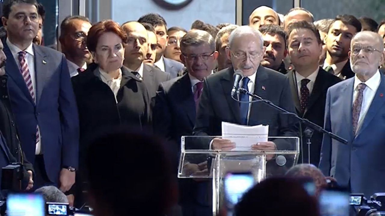 Millet İttifakı'nın Saadet Partisi Genel Merkezi'nde 6 partisinin yürüttüğü topantının ardından açıklama yapan Temel Karamollaoğlu, 6 liderin vardığı karar üzerine CHP Genel Başkanı Kemal Kılıçdaroğlu'nun Millet İttifakı Cumhurbaşkanı adayının Kemal Kılıçdaroğlu olduğunu duyurdu.